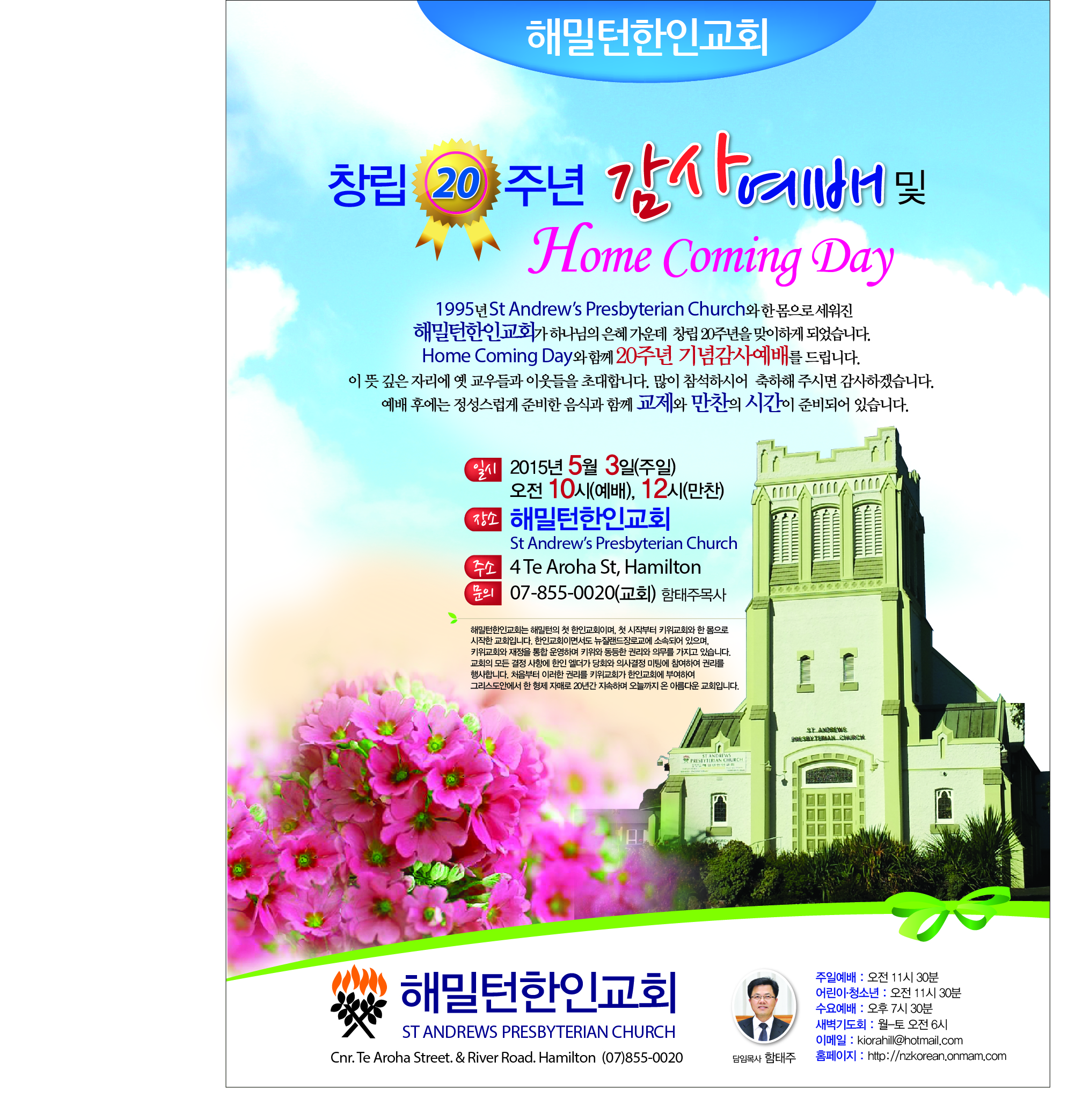 제목2015년, 창립 20주년 Kiwi-Korean 연합예배 및 만찬 52016-11-18 00:00